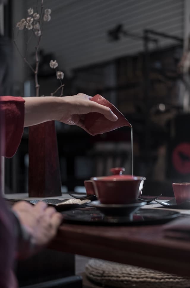 4. 우려낸 차를 여과기를 이용해 잔여물을 제거합니다.