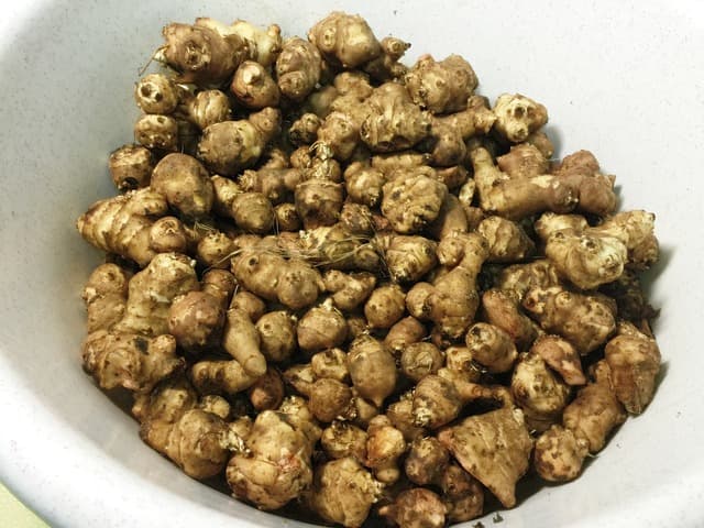 1. 돼지감자를 깨끗이 씻어 물기를 제거한 후 얄팍하게 자르거나 슬라이스 합니다.