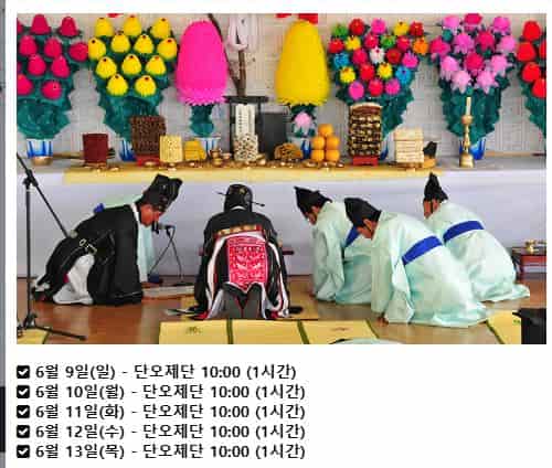 아래 글에서 강릉단오제 일정을 일정을 확인해 보세요. 또한 사전 예약을 통해 인기 프로그램을 미리 예약할 수 있으니 놓치지 말고 참여해 보시기 바랍니다.
